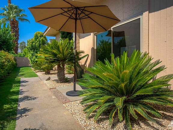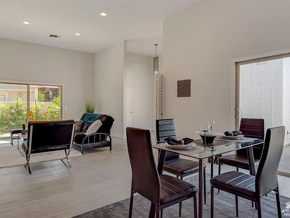 Holy Cow! A one of a kind, drop dead gorgeous, contemporary remodel in the heart of Indian Wells. This ravishing condo is infused with a desert modern concept; charismatic with cool and hip accents. South facing views of our majestic mountains & golf course which radiates from the back patio, just steps from the pool. The living room boasts high ceilings w/lustrous gray tile floors enhanced by a dazzling white tile fireplace & stainless steel mantel. Impressive new kitchen w/high gloss white designer cabinets enhanced w/a smoke quartz countertops w/waterfall edge & a textured backsplash. New stainless steel appliances create a very efficient gourmet galley kitchen. Bathrooms appointed w/high gloss white floating cabinets and smoke counter tops w/chrome accents. New windows and sliders w/low E glass. The remodel list is attached. La Rocca offers a 9 hole golf course, 2 tennis courts, a pickle ball court. Beautiful lakes & streams bring a tranquil environment for all to share.