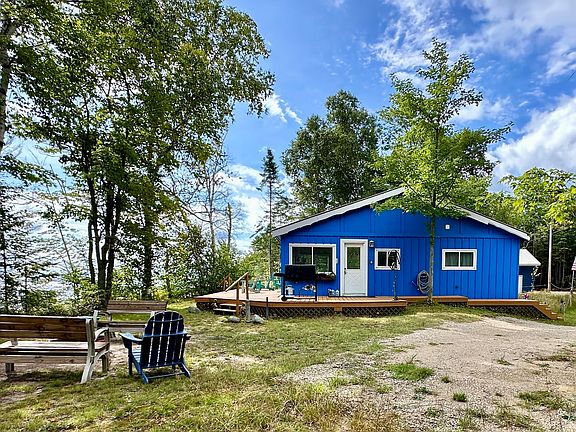 Cabin on Lake Superior's Whitefish Bay! 2+ acres with 300' of pristine frontage, elevated views and a stairway leading down to the shoreline, secured by a stone seawall. The 3BR/1BA cabin has been beautifully updated with new flooring, windows, remodeled kitchen and bath, modern appliances, and efficient heating and cooling for year-round comfort. The open concept living, dining, and kitchen areas showcase stunning water views, while the spacious deck is perfect for relaxing or entertaining. A rustic original log cabin adds potential as a guest space, and the new 50' x 32' pole barn provides excellent storage for vehicles, boats, and recreational gear. Private and secluded yet close to Paradise, this property combines new updates with classic charm. Create lasting memories on the Lake.