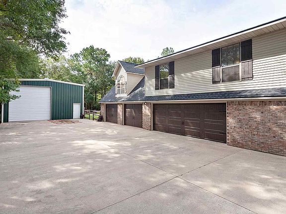 This home sits on 10.5 acres with large pine trees and oaks throughout, All brand new stainless steel Kitchen Aid appliances. Large mudroom/utility room with easy access to pool and back yard. Home features a large open concept with 6 large bedrooms and 4.5 baths. Downstairs you will find 4 bedrooms, with the Master bedroom containing private bathroom, double vanity, and separate closets, Upstairs you will see two large bedrooms, a separate full bath and two spacious rooms for a game room and one for office or additional bedroom. Property has a large 30' by 60' shop, a custom pool w/ large waterfall, big back porch for entertaining, two ponds previously stocked with bass and catfish for fishing, and the barn contains 2 spacious tack rooms and 4 horse stalls. Property backs to large wooded area and deer visit the property often. Enjoy the large acreage without the commute. Easy access north on HWY 69 or south to Beaumont Texas.