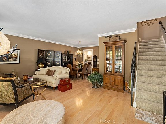 Gorgeous tri-level beach home, quietly situated within the heart of Pacific Ranch, a highly sought after 24 hour guard gated community. This townhome style beauty has plenty to offer and it all starts with a quiet & serene location along the greenbelt, right next to the fountain. As you walk up to the door, there is a private front patio with brick accentry. Once you enter the home, you are greeted by an open formal living and dining room. The living room features a gas fireplace with a glass screen & decor. Next comes the light & airy kitchen with white cabinets, granite counters, a center island + stainless steel appliances, including a gas oven & range with vent hood, dishwasher, built-in microwave, trash compactor and refrigerator, which is included in the sale. There is a den adjacent to the kitchen with access to a large private lattice covered patio. There is also a remodeled guest bath on the main level, with new vanity & mosaic tiled floor. All of the bedrooms are upstairs and offer vaulted ceilings, mirrored wardrobe closets and ceiling fans. The primary suite is very spacious and comes with a South facing balcony, offering views of the greenbelt & fountain, along with plenty of natural light. The primary bathroom offers a dual sink vanity with granite countertop, a tiled walk-in shower with glass enclosure, a separate soaking tub and a high volume ceiling with a skylight. The upstairs hall bathroom has a tiled shower with glass enclosure, a pedestal sink + both bathrooms have tile flooring. Last but not least , there is a very spacious bonus room on the lower level, which could be used as a 4th bedroom and also features a skylight and a sitting area. Bonus features include: crown moldings thru-out, recessed lighting, plantation shutters, all new paint, elegant wood flooring on the main level, high end laminate flooring upstairs, new vinyl flooring downstairs, a skylight in the upper hallway, built-in closets in the garage, a new heating and A/C system, an inside laundry room and a 2 car attached garage with direct access to the home. This lovely home is also walking distance to several restaurants, a park, the downtown area and is a short bike ride to the beach, a must see!