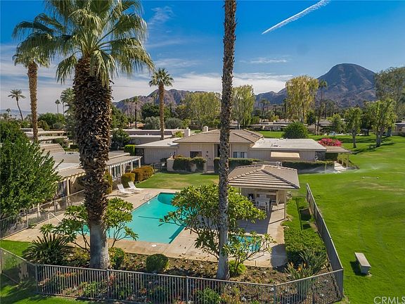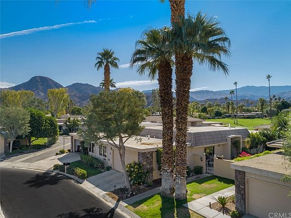 Welcome to La Rocca, the Ultimate Hidden Gem of The Desert. This fabulous quaint gated community includes 68 single story homes with incredible lush grounds, a beautifully groomed golf course (Green Fees Included in HOA Dues), 6 pools and spas with cabanas, tennis, pickle ball and much more. Highly upgraded and customized home ideally located close to the front gate with incredible greenbelt, mountain and panoramic views plus a pool and spa right outside the patio, and guest parking across the street. The gated garden courtyard leads to the double doors that open to the tile floor entry and interior French Door accessed Atrium and 1/2 bath. Stunning crown and baseboard moldings. Dual A/C. The living room features soaring ceiling, tile floors and fireplace. The bright tile floor dining room overlooks the Atrium and has a wet bar. Remodeled kitchen with butler's pantry, granite counters and tile floors opening to a view dinette with plantation shutters. Elegant double door entry view master bedroom with plantation shutters, organized walk-in closet, direct access to the patio plus it overlooks a pool. The exquisite master bath has a dual sink granite vanity, separate tub and shower and a view of the atrium. Two big guest bedrooms, one with direct access to a full bath with granite vanity and the other opens to the patio and pool with plantation shutter and wood type floors. Indian Wells residents enjoy reduced green fees at the Indian Wells Resort and restaurant discounts.