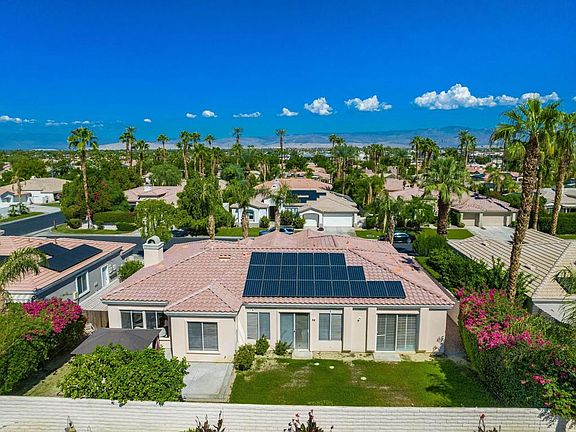 Gorgeous 4 bedroom, 3 bath home waits for you behind the gates of prestigious Colony Cove in Indian Wells! Double front doors lead into the Great Room complete with beautiful tile flooring, custom crown molding and recessed lighting. The chefs kitchen features double ovens, beautiful granite countertops (with an oversized island) and upgraded appliances. Master suite boasts plantation shutters, a custom closet with built-ins, a stunning Master bath with upgraded counters, a separate shower and soaking tub. Guest room also boasts a custom closet. Large back yard with new gazebo is large enough for the children to play or for you to design the pool of your dreams! Solar Panels purchased 2 years ago for $24,000.00 (no lease to assume) comes with a 25 year Warranty. 2 A/C units-one 3 years old and the other upgraded at the same time. Enjoy all the perks of Indian Wells ownership! Free tickets available every year to attend the Tennis Tournaments, free admittance to the Aqua Serena spa for work outs plus discounts on golf and restaurants! Only selling because the family is growing! THIS IS THE ONE!!!