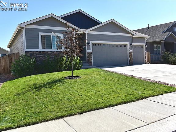 Amazing Aspen View Coronado model in the newest section of The Glen at Widefield neighborhood close to Fort Carson, Peterson and Schriever Air Force Bases. Beautiful and wide entry leads to the 16x17 Living Room. Island and breakfast bar in the Kitchen that has 42 inch cabinets and the owner had the builder expand the pantry for more food storage. You will notice the dining area is large enough for holiday meals. The master bedroom has a wonderful 5 piece bath and large walk in closet. All 3 secondary bedrooms are very great size and 2 of them also have walk in closets. In the basement there are 9 foot ceilings, a huge family room and lots of additional storage in the utility room. Extra large and partly covered concrete patio for your outdoor entertaining and concrete pathway around the side of the home. The 3-car garage (with 4 remote controls) has electric car charger and entrance door to the side yard. Come see!