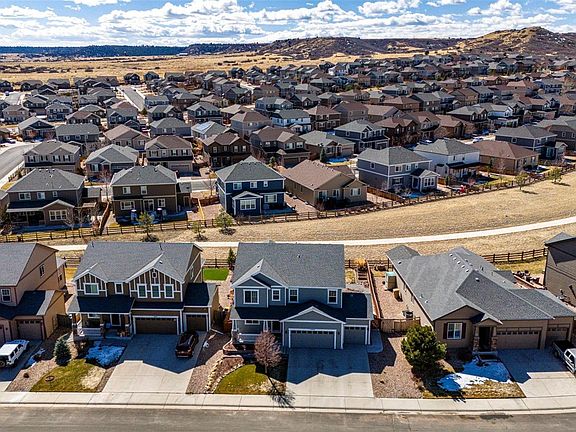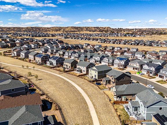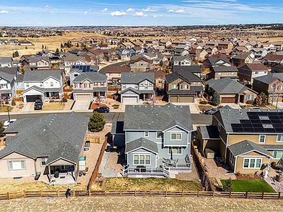 Nestled between Castle Rock and Parker, this exquisite two-story home boasts a perfect blend of luxury and functionality. With five bedrooms, an office, and a spacious loft, this residence offers ample space for both work and relaxation. The four bathrooms, including one in the fully finished basement, add convenience and privacy. At the heart of the home is a gourmet kitchen, equipped with modern appliances, gas cooktop, double ovens, and huge island along with stylish finishes. This home features the breakfast nook extension for all to gather. A cozy fireplace enhances the warmth of the great room. Enjoy the benefits of a water filtration system throughout the home. Step outside onto a large Trex deck that overlooks manicured landscaping and walking trail, providing an ideal setting for outdoor gatherings and relaxation. This residence seamlessly combines elegant design, practicality, and a prime location, making it an exceptional place to call home. Surrounded by miles of trails, easy access to Castle Rock and Parker. Welcome to Cobblestone Ranch, Welcome Home! * Ask about VA Assumable loan*