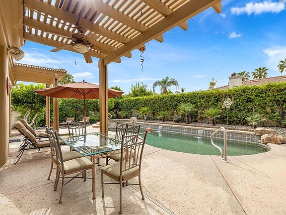 Welcome to 74947 Verbena Court, an incredible desert resort home located in the heart of the beautiful city of Indian Wells. This luxurious home is nestled in a prime culdesac location, just minutes away from world-class golf courses, fine dining, and the renowned Indian Wells Tennis Garden.The home itself is a stunning example of modern architecture, featuring three bedrooms in the main house with an attached Casita for the 4th bedroom suite. Upon entering, you are greeted by a light-filled living room with vaulted ceilings, ample windows, a cozy fireplace, and a climate controlled wine closet, creating the perfect atmosphere for entertaining. The home also boasts a spacious formal dining area, a gourmet kitchen with top-of-the-line appliances, and a cozy breakfast nook.The primary bedroom features a luxurious en-suite bathroom with dual vanities and a soaking tub with an amazing built in closet with endless storage space throughout. Outdoors, you'll find a private oasis with a sparkling salt water pool and spa, a lush garden, and a built-in outdoor kitchen complete with a misting system and a mature fruit orchard.This home is a dream come true for those seeking the best of California living including fully paid SOLAR that saves homeowners thousands of dollars a year in electricity. With its stunning desert views, convenient location, and luxurious amenities, this is desert living at it's finest!
