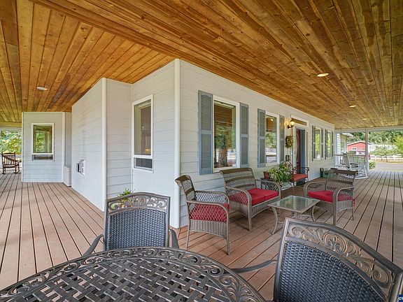 14.37 acres with forest, Battle Creek, pasture, gardens, landscaped parklike setting. Approx. 3,762 sf, 3-4 bedrooms, 2.5 baths, beyond the picturesque entrance lies your private sanctuary ~ everyone’s dream. Solar panels installed 3/3/23, 13.5 KWp. New roof 2012. Large, covered wrap around porch. Port Orford 15x27 cedar deck 2017. Dual living possible - additional kitchenette. 9,360 sf covered arena plus 6 stalls, several additional outbuildings & much more!