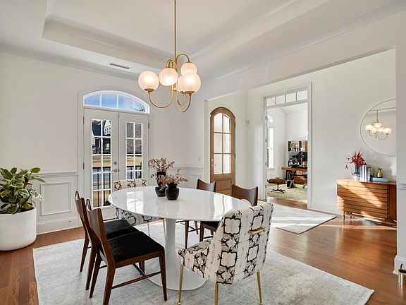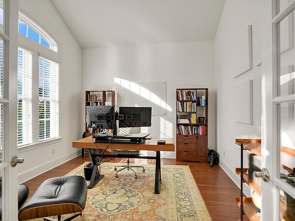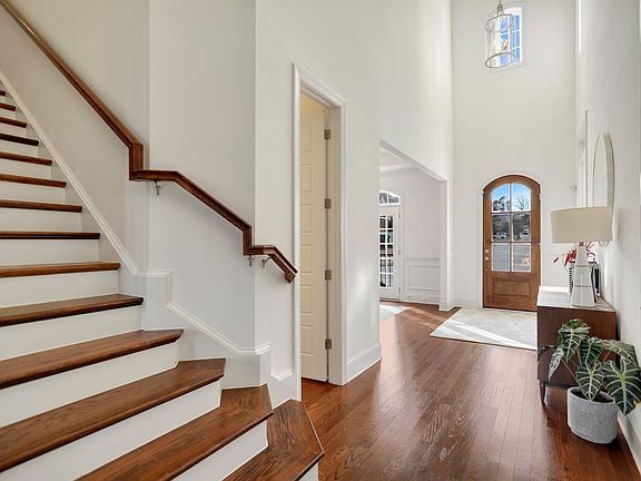Stunning custom home in prime NW Raleigh location. Hardwoods throughout 1st floor. 10 ft ceilings. Formal dining includes trey ceiling & wainscoting. 1st floor office has french doors and vaulted ceiling. Spacious family room features built-in bookshelves and gas log fireplace. Bright & open eat in kitchen offers massive center island, quartz countertops, stainless steel appliances (gas cooktop), tile backsplash & walk in pantry. Large breakfast room with fantastic views. 1st floor primary suite has vaulted ceiling, soaking tub & separate tile shower w/ bench, herringbone tile bath floors & generous walk in closet. Upstairs includes 3 additional bedrooms + large bonus room. Basement features separate living area with projector/screen + huge rec/flex room, bedroom with full bath, fitness room & workshop/storage area. Wonderful screen porch offers great wooded views. Fenced backyard. Convenient to I-540, Brier Creek, Downtown Raleigh, RTP & RDU.