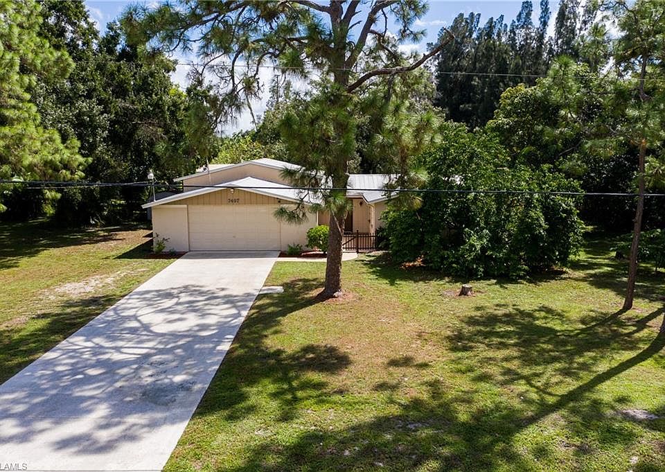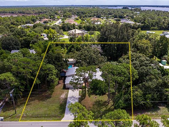 Fall in Love with your new home! This 1.6 acre home is located in a convenient and desired area of North Fort Myers. Enjoy the summers and for the most part beautiful weather all year around in your 14x28 Swimming Pool with a Brick Deck. The home is just over 2,000 sq.ft with an attached 2 car garage. The home has 3 designated bedroom and very easily the possibility of a 4rd bedroom, its already partitioned out (you will have to see this in person to see what I mean). Or a 3 bedroom + den. Lots of possibilities!! 2 full bathrooms. The garage has storage and built in shelving. Stainless Steel Appliances in the kitchen. Metal Roof, A/C installed in 2012, Septic Tank pumped in 2019, Quarterly Pest Control maintained. Monitored Security Camera - 8 camera video security system with remote monitoring. This property is filled with tons of fruit trees, some of which include: Banana, Mango, Atemoya, Carambola (Star Fruit), Mirace Fruit, Coconut Palm, Lychee, Longan, Sour Orange, Guava, Macadamia Nut, Avocado, Key Lime, Sugar Apple, Pummelo, Persimmon. Screened in porch. Peaceful fire pit and outdoor area. Carport/Lean to with additional storage for lawnmower, side by side, tools, etc.