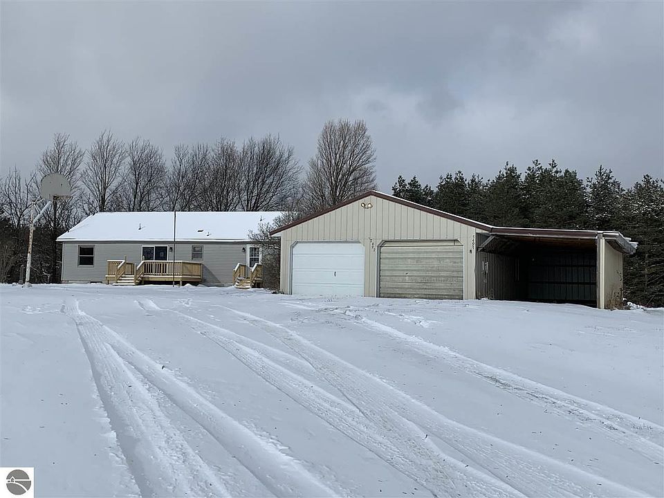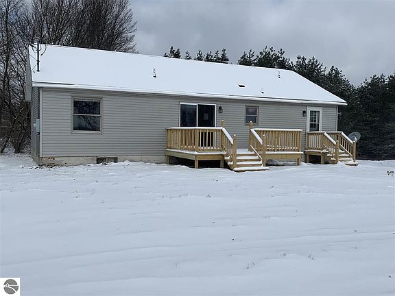 Beautiful, clean family home in Manton. This well maintained 3 bedroom 1 3/4 bath ranch includes 2 acres, natural gas, and a great pole building with an additional lean-to. 5" Low maintenance home with 5" well and high efficient zoned hot water boiler system. New paint, doors, decks and flooring makes this one move in ready. Outside features a great yard with fruit trees and bushes. Perfect location just outside of town!