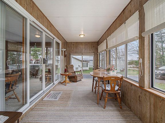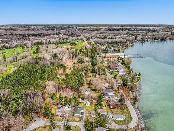 Breathtaking front porch view of picturesque Mullett Lake! This 2 Bed 3 bath village home is nestled right in the heart of everything beautiful Northern Michigan has to offer. A stone's throw from the course makes it more than ideal for any golf enthusiasts. Complete with not one, but two sun rooms, An attached finished garage and a full finished basement. The additional 2 car garage is finished and heated with a bathroom and a storage loft. Views of the lake from both front and back yards. Enjoy all 4 seasons to the fullest!