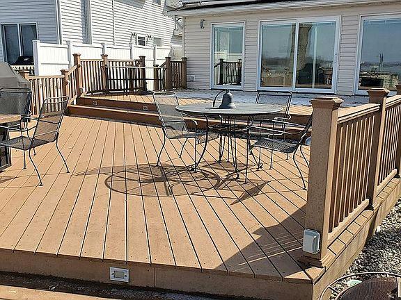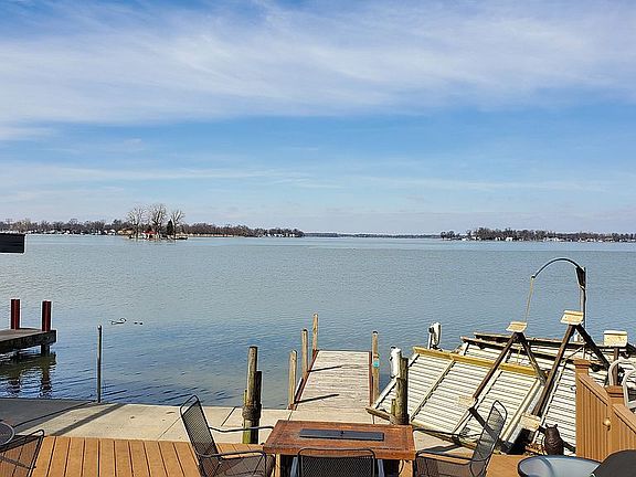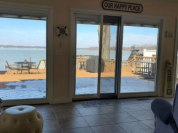 This newer 3 bedroom 2 bath Lakefront home offers one of the best open water views on the lake! Sunset views are stunning! Built in 2007, featuring ceramic tile floors throughout and high end Pella windows with built-in blinds. Beautiful white kitchen with water view, corian countertop, breakfast bar with barstools. Master suite with cathedral ceilings, custom tile shower and 2 carrara marble vanities. Large entry serves as a 4th sleeping area. Outside features include a 30 x 39 waterfront trex deck with electric canopy and outdoor lighting. Approximately 25 feet of water front allows for a pier for docking a boat (electric boat lift negotiable). A huge 24 x 30 2.5 car garage provides plenty of storage of all of your toys. A perfect place to spend your summer or be a full time residence. This one is a must see and a rare find in the desirable Waterbury community.