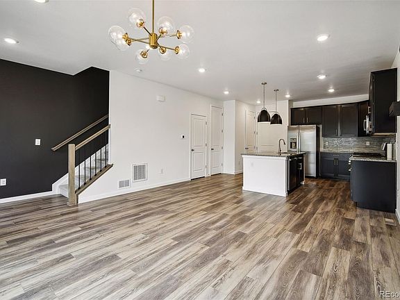 Welcome home to Green Gables! This almost new (1.5 years old) townhouse boasts three bedrooms, two bathrooms, and a main level powder room. The stunning kitchen has contemporary black cabinets with gold hardware, quartz countertops, and black dome pendant lights. The unit also features a spacious front patio and bonus space at the top of the stairs that can be used as a reading or office nook. The Green Gables community is well maintained and offers a low HOA fee that includes a great pool, just in time for summer! This central Lakewood location is a short drive to Belmar Park and the Belmar shopping district, King Soopers across the street, and is walkable to get your morning coffee at Dunkin, gas for your trip to the mountains at Circle K, or a quick bite to eat at Culvers! This move-in ready and low maintenance unit is ready for your personal touches. Book your private showing today!