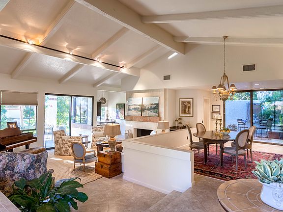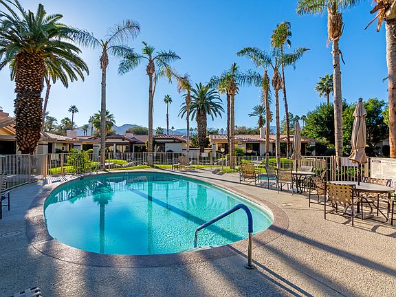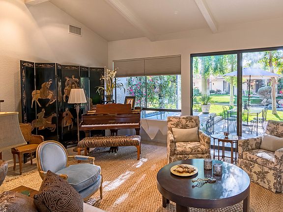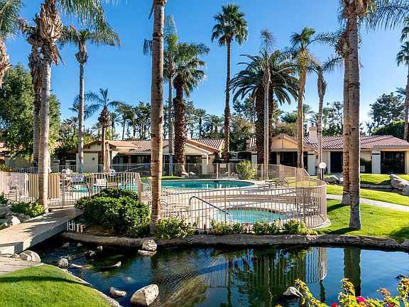 Enjoy desert living in this beautiful Los Lagos home. Situated on a stunning lot, this home is perfect for entertaining or relaxing. The private side yard is a knockout, and is only steps from the pool on a private walkway. The open floor plan features 2 master suites and one additional bedroom, 3 baths, a lovely new kitchen with stainless appliances, gas cooktop, and two ovens including convection/microwave. The breakfast room overlooks the sparkling waterway and beautifully landscaped back yard and patio. The living and dining room and bar with sink and wine cooler, are spacious and delightful for a party, or sitting by a cozy fire. Additional features are a huge walk in closet (or studio or office), laundry room with Samsung front loading washer and dryer, and 3 fire pits. Conveniently located in Indian Wells, Los Lagos is a gated community with pools, tennis courts, lakes and waterways. Residents of IW enjoy benefit amenities.