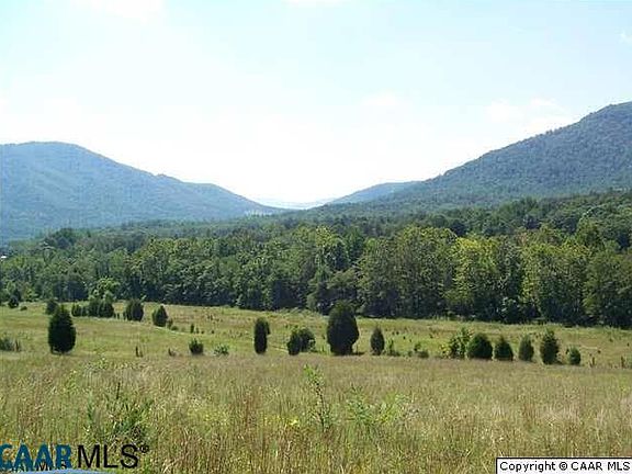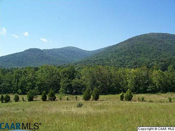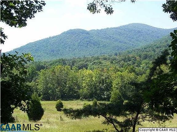 A rare opportunity to acquire a Western Albemarle property, below assessment, with sweeping, breathtaking views of the Blue Ridge Mountains and nearby Shenandoah National Park. The 56.92 ac. fronts "Muddy Run" Creek and includes a small tract of pasture land across the road from the driveway, along the creek. Be sure to view the photos! There are 5 division rights. Very little value is placed on the existing house and farm structures, they convey as-is or can be removed.