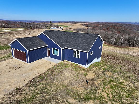 The VIEW!Welcome to your dream home with a view that will leave you breathless! Nestled in a picturesque location, this recently completed residence is a testament to thoughtful design and meticulous construction. The first thing that captivates your attention is the stunning panoramic view, visible from the moment you arrive and extending onto the expansive deck. The house was strategically positioned to maximize this visual feast, ensuring you and your friends never tire of the awe-inspiring scenery.Constructed with precision, this 3-bedroom, 4-bathroom home spans 3,328 square feet, boasting modern elegance and comfort. The main floor has an open kitchen and living room concept adorned with Cambria countertops, vaulted ceilings, a pantry, and a conveniently located laundry room. All three bedrooms are on the main floor, with the master bedroom granting access to the deck, dual walk-in closets, and an ensuite featuring dual sinks, a soaking tub, and an expansive walk-in tile shower. The second main floor bedroom enjoys its own private full bathroom, while the third bedroom offers Jack and Jill access to the main floor full bathroom, coupled with breathtaking views. The attached 2-car garage is equipped with in-floor heating for those colder months.Venture downstairs to the partially finished basement, complete with in-floor heating, stamped concrete flooring that mimics rustic wood, spray foam-insulated walls and a full bathroom. The open floor plan allows for personalized finishing touches to suit your preferences. The basement also houses the mechanical room, ensuring all systems are in top-notch condition. Fiber optic internet is ready for hookup, providing seamless connectivity and the ability to work from home.Beyond the house lies 10 acres of income-generating crop land leased to a local farmer. The rolling timber, complemented by a trail network, invites exploration of the expansive property. This area is well known for high deer numbers and trophy bucks; this area promises a wildlife spectacle, with deer and turkey frequently visible from your windows. This property is an ideal retreat for those seeking the joy of country living and a deep connection with nature.Don't miss the opportunity to make this dream home yours! Contact Bob to schedule your private showing and experience the allure of this stunning property firsthand.