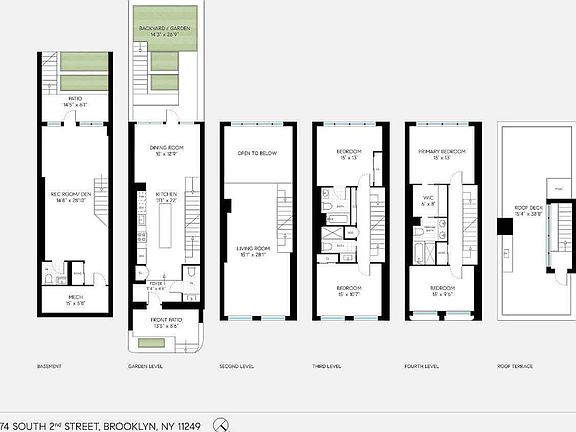 *Prime Williamsburg Townhome for Rent: Luxury, Space & Unmatched Views* This reimagined 4-story townhome in the heart of Williamsburg is a masterpiece of indoor-outdoor living, designed for those seeking luxury, space, and convenience. Featuring expansive outdoor areas, including a rooftop deck with a full outdoor kitchen, this residence offers the perfect blend of modern living and classic design. **Key Features - 4 spacious bedrooms - 3 full bathrooms and 2 half bathrooms - High ceilings on every floor - Bright, natural light throughout from large windows and skylights - A stunning rooftop with panoramic views of Manhattan, Brooklyn, and beyond - Private garden with mezzanine and patio access - Covered porch for additional outdoor lounging - Great Room with mezzanine-level communication between floors - Parking is available in the building next door for an additional fee. **Luxurious Living Spaces The top-floor penthouse suite boasts a custom walk-through closet and a spa-like bathroom with double sinks, a deep soaking tub, and a shower. The south-facing windows flood the suite with light and provide serene views of the garden below. An adjacent home office or second bedroom is conveniently located on this floor. On the 3rd floor, you'll find two additional bedrooms and two full bathrooms, including a mini-master suite. A washer, dryer, and linen closet offer added convenience on this level. **Modern Kitchen & Great Room The second floor features a fabulous Great Room with mezzanine-level communication to the lower floors, creating an open and connected atmosphere. The parlor level's gourmet kitchen is equipped with Miele appliances, ample counter space, and abundant storage. The adjacent dining room opens seamlessly to the garden through a stunning glass wall, perfect for entertaining. **Additional Amenities - Finished rec room in the basement with a powder roomideal for a media room, workout space, or playroom. - Classic wooden staircase enclosed by a glass wall, connecting all four stories and the basement. - Three distinct outdoor spaces, including a rooftop perfect for summer entertaining. **Neighborhood Highlights Located in prime Williamsburg, this townhome is just steps from iconic destinations like Domino Park, offering incredible views of the Manhattan skyline. You're also within a short walk to the year-round Farmers' Market and the recreational opportunities at McCarren Park. Surrounded by Williamsburg's finest shopping, dining, and cultural spots, you'll enjoy the best the neighborhood has to offer. This townhome is a rare opportunity to live luxuriously in one of Brooklyn's most vibrant neighborhoods. Don't miss out!
