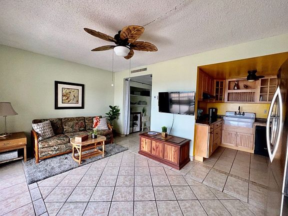 This one bedroom, one bath condo w/ a beautifully updated kitchen and bath will charm you. No detail has been overlooked in the inviting updated kitchen. Wood cabinetry with abundant storage, a farmhouse sink, granite counters and accent lighting are just a few of the features that will wow! you. There is a roomy bedroom adjacent to the bath and indoor laundry area. A hallway w/ closets on both sides leads to the living room. The dining room is currently being used as an office but has room for a table and chairs. There is central air-conditioning and easy care tile flooring throughout. In addition, the condo offers outdoor living space on the spacious lanai which overlooks iconic Alii Drive w/ peeks of the ocean.