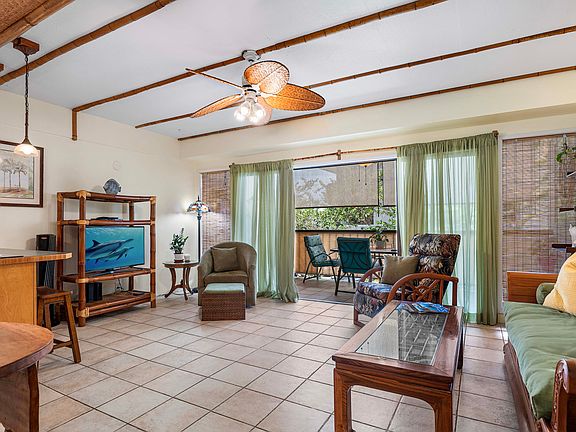 Steps to Ali‘i Drive and the ocean, this beautifully furnished turn-key one bedroom condo is move-in ready! Attention to the detailed and creative updates is apparent in every room, from lauhala and bamboo finished ceilings to tile floors, throughout. Kitchen has a convection microwave oven, tankless water heater. The enlarged bedroom features a lovely four-poster bed with comfortable mattress; with adjustable bedframe and the bathroom’s décor includes a glass block shower partition, which borders a fully tiled shower. A large lanai provides an expanded space for dining or lounging, and includes privacy/sun shades for added comfort. Lovely furnishings, artwork, newer appliances, plus plenty of cabinets and storage spaces, make this condo ready for a full-time resident, or it can be licensed as a STVR.