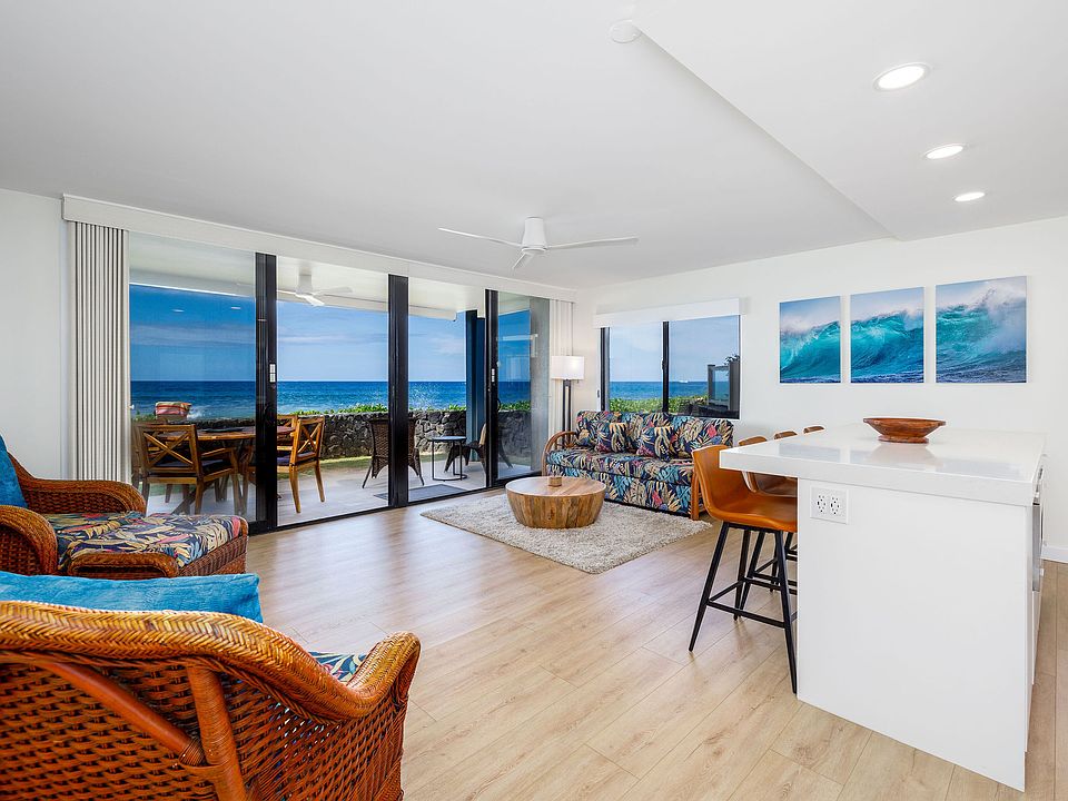 Direct Oceanfront Luxury at Kona Reef – Unit A7<br><br>1 Bedroom | 2 Bathrooms | Fully Remodeled STVR Certified Corner Unit<br><br>Welcome to Kona Reef A7, a truly one-of-a-kind direct oceanfront residence offering the ultimate in coastal living. Perfectly positioned on the coveted ocean-edge corner of the complex, this rare ground-floor end unit captures sweeping panoramic views of the Pacific, with the sights and sounds of the ocean just steps from your lanai.<br><br>Completely remodeled from top to bottom, A7 showcases meticulous craftsmanship and modern island elegance throughout. Every surface has been reimagined — from the luxury flooring and designer lighting to the custom cabinetry, stone counters, and spa-inspired bathrooms. The remodel also created a brilliantly open floor plan, originally a permitted 2-bedroom, 2-bath configuration, now thoughtfully re-envisioned into an extra-spacious 1-bedroom, 2-bathroom retreat. The result: a bright, breezy, and expansive layout that feels both luxurious and comfortable.<br><br>As a corner unit, A7 enjoys additional windows that flood the interior with natural light and frame postcard-perfect ocean and sunset views. Step outside onto your private lanai and experience unobstructed coastal vistas — where you can watch breaching whales, playful dolphins, and the rhythmic surf, all from your front-row seat to paradise.<br><br>Located just next to the oceanfront pool and BBQ pavilion, this residence blends resort-style amenities with the rare privacy of a prime corner position. Enjoy easy access to Ali‘i Drive’s restaurants, shops, and beaches — all within walking distance from your door. Kona Reef offers a pool, spa, BBQ pavilion, elevator, EV charging, and beach access next to Honl’s Beach—just a short stroll to dining, shops, and Kailua Village<br>STVR permitted, and a very successful, frequently booked vacation rental. <br>HOA dues cover utilities such as water, sewer, trash, cable TV, and maintenance of common areas.