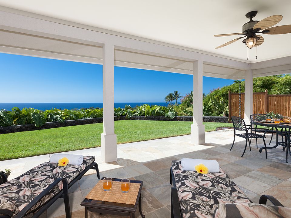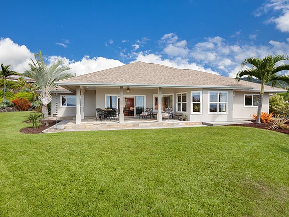 Immaculate home in Kahakai Estates! Enjoy sweeping ocean views and balmy breezes from this custom residence perched on one acre just south of downtown Kailua-Kona. The moment you enter the stained glass front entry, you are greeted with views of the beautiful blue Pacific Ocean overlooking the manicured citrus and mango orchard. The sculpted landscaping combines tropical flowers and exotic plants throughout. The spacious interior and large covered lanai provide the perfect spot for entertaining friends and family. The kitchen and dining room have breathtaking views and feature ample counter space.This custom low maintenance residence has been impeccably cared for and shows pride of ownership. There are many upgrades and features including:*Owned 14-panel Solar Photovoltaic system*Solar hot water system*Central Air-Conditioning *2 temperature-controlled whole house attic fans *Tiled flooring in kitchen and baths*Cherry wood floors in living room and bedrooms - no carpeting!*LED recessed lighting*Extended 2-car garage (616 sq.ft.)*Large driveway and ample parking*Alder DeWils cabinets and Silestone counters and baths *Extensive fruit trees and beautiful tropical landscaping on large one-acre lot*Low maintenance stucco exterior and much more...Kahakai Estates is a desirable gated subdivision close to town and beaches with protective covenants and a 3-acre resident's park, walking paths and private streets. *Fourth bedroom is permitted as an office/den with closet. Furniture available outside of escrow.