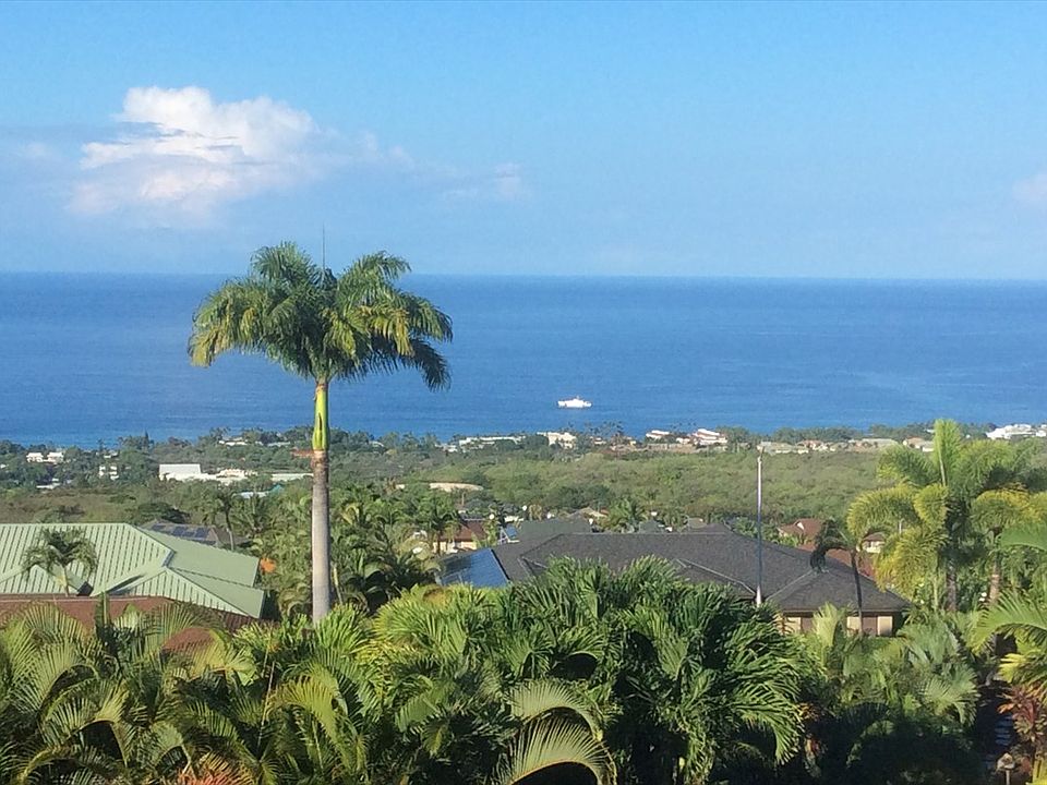 Perfectly situated on a terraced lot, with extraordinary ocean views, this immaculate home has it all. 4 bedrooms and 4 baths, with the master suite, great room, kitchen, laundry room and 2nd bedroom at street level, including an over sized 3 car garage and lots of extra parking...(think boat).There is a purchased Photo voltaic system, so your electric bills are nil and the 3 AC units will cool you beautifully, while you gaze at the incredible views!The kitchen is to die for, with a huge refrigerator/freezer , 6 burner gas range and 2 convection ovens, bring on the party!!The lanai is over 700 sq. ft, which flows from the great room and master for the ultimate sunset viewing in Kona! With literally two floors of grand size rooms, there is room for a large family, visitors and plenty of storage. There are laundry rooms on each floor, so the guests or kids can do their own! Lots of storage, you will not find a better and more convenient floor plan than this! Lush and beautiful landscaping, with two grassy areas, mango, citrus and avocado trees, along with gorgeous tropical flora, plus room for a pool! Nestled at the end of a private cul de sac, with open forested land to the south, this location is just minutes from the action, in town & the beach, but feels like you are on top of the world!The over sized detached garage has an AC unit and workshop, with extra 220 outlets, for the hobbyist!5 Star listing, it will be gone in a wink!