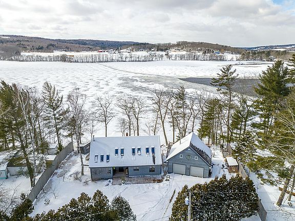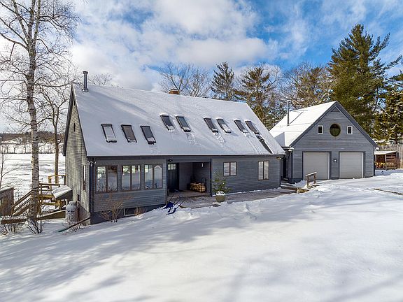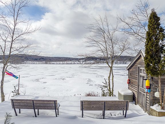 Two, year round contemporary homes on a combined 2.46 acres offering the ability to have a family home with guest house or live in one home and rent out the other. The main two bedroom/ two bathroom house has numerous windows throughout allowing unobstructed views of Seven Tree Pond and the hills beyond. Although the design allows for easy one floor living, there is an additional bedroom, loft area, and full bathroom on the second floor. Care of the home shows through with wood floors throughout, Corian counters in the kitchen, new insulation, new windows on the backside of the home, and custom tiered decking to the back of the home that leads you to the water, writer or yoga studio. or sauna. The detached two car garage has a finished space above the garage that could be a studio space, if desired. In addition to the main home, there is a new custom 799 square feet house with an open floor plan on the first floor and sleeping area in the second floor loft area. It can host visitors or can be used for rental income. The wrap around deck, with the main house, is large and accommodating with reliable stairs leading you to the water for fishing, swimming, or just relaxing on the benches located at the waters edge. There is a small area behind the garage for roasting marshmallows or to take in the sounds of the water. Many perennial gardens are throughout the property in addition to asparagus, apple trees, highbush blueberries, and raspberry bushes. There are plenty of spaces for more gardening should one choose. Close to Union center for meals and groceries or a 20 minute drive to Camden, Rockport, or Rockland. Ready for new owners to cultivate it into their own interests