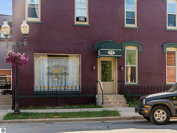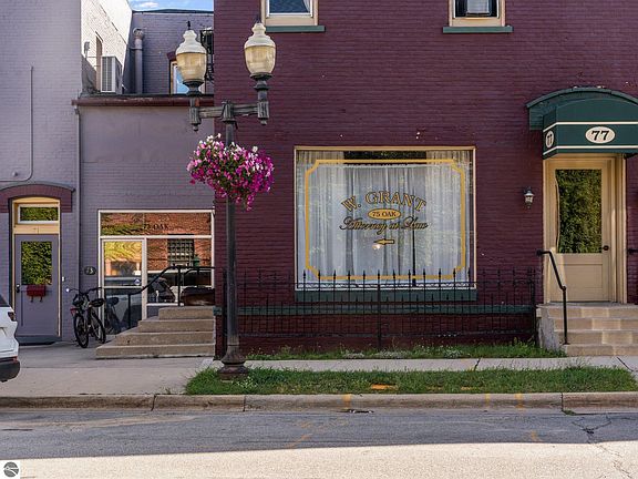 Historic 4-unit building located across from the Manistee River in downtown Manistee. This beautiful property features high ceilings, stained glass, walk-in safes, and decorative marble fireplaces. 75 Oak Street is a commercial unit currently rented to a long term tenant, while 77 Oak Street consists of three charming and unique residential apartments, known as A, B, and C. 75 Oak Street and apartment C both have finished lower levels. All units have separate natural gas and electric meters.