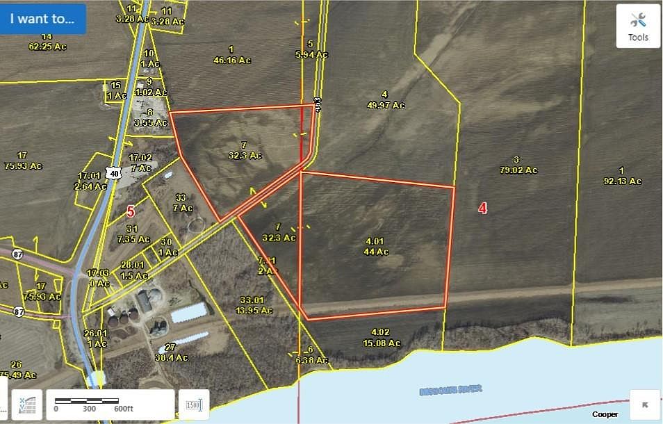 75 ACRES MISSOURI RIVER BOTTOM GROUND. Rare chance for choice land. 73 of the 75 acres are tillable. Howard County, MO. Howard-Cooper Port Authority recently purchased 17 acres of river frontage adjoining this 75 AC tract; they plan to build a multi-barge loading and unloading facilities, thus creating an investment for future infrastructure for the port.