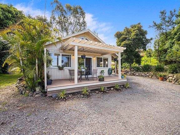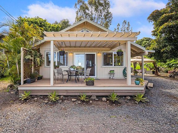 Sweet and Charismatic this smaller 2b/1b 768sf custom home is super clean, recently upgraded and very charming! Surrounded by nearly 1 acre of prime Kula land offering modest ocean views, privacy, irrigated extensive manicured gardens perfect for growing edibles, along with many fruit producing trees, all well set back from the street. This is unit A of a 2-way CPR (2 acres total), with its own separate lengthy private driveway access, coupled with ample off-street parking. Located in a lovely neighbourhood downhill from the Kula Lodge, the home has a new roof; soaring interior vaulted ceilings creating a feeling of spaciousness; plenty of extra large windows for natural lighting; plantation blinds; granite island and kitchen counters; large pantry; upgraded new stainless appliances; cozy electric fireplace in the living room; bamboo hardwood flooring throughout; enhanced updated bathroom. Outside you’ll be delighted to enjoy the pergola covered Trex-deck lanai, propane gas fire-pit + barbecue which adds heaps of ambience to the large covered dining area gazebo ideal for entertaining. There is plenty of additional storage in the 2 detached sheds; home is serviced by septic system and is zoned Rural .5 acre.