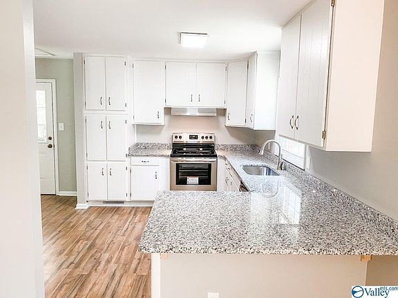 Newly renovated move-in ready full brick home with walkout basement is nestled among mature trees on 1.2 acres. Lots of privacy! This home features an updated kitchen complete with granite counter tops, over-sized single bowl stainless sink, stainless steel appliances and LVP floors in all wet areas. Tasteful updates abound in this home. The beautiful, refinished hardwoods continue throughout the space. Brand new fixtures throughout. Low maintenance metal roof, double hung windows, newer water heater and HVAC. This home is minutes from Ditto Landing, downtown Huntsville, Redstone Arsenal and South Huntsville eateries and shopping! The perfect place to call home! Sold As-Is.