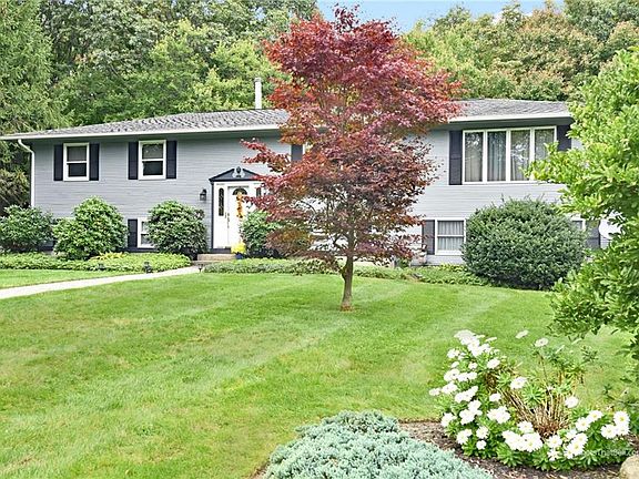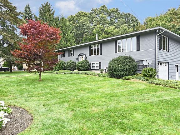 Expanded Raised Ranch-- Large, Open and with more room should you desire. The main floor boasts a double living room, formal dining room, updated bathroom and a modern eat-in kitchen which opens up to a large deck, overlooking a private yard. The Master has a private half bath and its own access to the deck. The lower level has a fourth bedroom, large unfinished utility space, laundry and an integrated garage to the driveway. The corner lot is meticulously maintained; with a private patio backing up to woods. This home has a number of updates including Central air, Hardwoods and Stainless Steel Appliances. The exterior was freshly stained in 2017 and there is a huge opportunity for further expansion with an additional 1000 square feet on the ground level currently being used as storage. Easily build out a Family room, more bedrooms, an in-law or workshop, etc. Create additional space that suits your needs or simply utilize the easy storage.