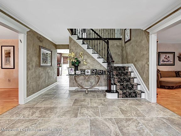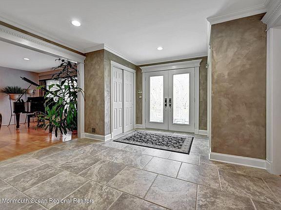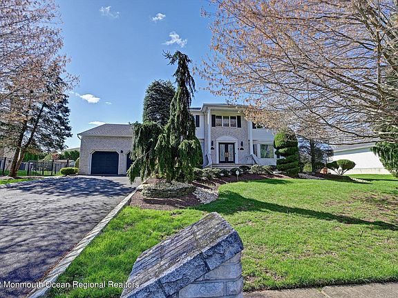 Discover refined living in this 4/5-BR, 4-BA Center Hall Colonial nestled in the peaceful heart of Marlboro Township. A double door entry welcomes you into a spacious hall featuring tumbled marble tile and exquisite custom moldings. The formal living and dining rooms, highlighted by hardwood flooring and bay windows, seamlessly blend into a chef's dream kitchen equipped with custom 42'' wood cabinetry, a Sub-Zero refrigerator, and Wolf appliances. The 20x13 family room opens to the kitchen, perfect for casual entertaining. A versatile den/5th bedroom on the first level next to a full bath offers added flexibility. Upstairs, the master suite boasts a sitting area, walk-in closet, and a spa-like bath with a whirlpool tub. Three additional bedrooms and a stylish main bath with a European vanity provide ample space for family. A finished basement with a full bath extends the living space. The backyard is an oasis with an inground saltwater pool & spa, surrounded by paver decking and a multi-level Trex deck for outdoor enjoyment, all encased in elegant wrought iron fencing and professional landscaping. Full House Generator Don't miss this epitome of modern elegance!