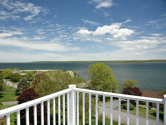 Capture the views and breathe the sea air from this Custom Colonial sited on a hill above the tidal Sakonnet River and steps to Portsmouth's natural sandy beach at Mc Corrie's Point. Relax on the mahogany front porch and watch the sailboats, kayaks and fishing boats go by. Invite friends and family over to dine al fresco on the front porch or have a party on the patio under the pergola with a fire! Main level includes a Chefs Tuscan kitchen to entertain friends and family, stainless appliances, double oven, pot filler over a gas stove with down draft, custom soft close cabinetry, under the cabinet lights, hickory floors and a wood burning fireplace! Large central Great Room on the main level featuring custom moldings and hickory floors throughout. Full bath downstairs and a full laundry room. Upstairs an Owners Suite which includes bedroom with vaulted ceiling, luxurious bath, private deck and spectacular office or sitting room. Two guest bedrooms have a full bath with shower and whirlpool bath in a separate wing. Let me share this special home and majestic views with you!