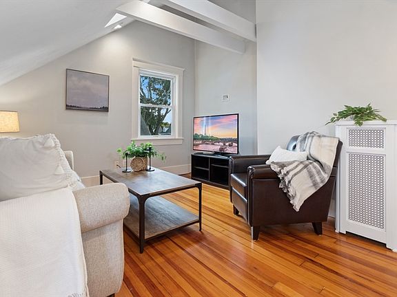 Don't miss this BRIGHT & SUNNY MOVE-IN READY 2-BEDROOM condo LOCATED in a PRIME MELROSE NEIGHBORHOOD! This TOP FLOOR unit features a great floor plan, IN UNIT LAUNDRY and HARDWOOD FLOORS THROUGHOUT. The large EAT-IN KITCHEN offers generous cabinets, STAINLESS STEEL APPLIANCES, GRANITE COUNTERS & slider access to a PRIVATE THIRD FLOOR DECK. The living room has VAULTED CEILINGS and access to the outdoor deck as well, making this home PERFECT FOR ENTERTANING. The PRIMARY BEDROOM has a LARGE CLOSET plus FINISHED STORAGE under the eaves accessed by sliding mini barn doors. The SECOND BEDROOM is currently used as a guestroom but has ENDLESS POSSIBILITIES. The FULL BATH with DESIGNER FINISHES and TWO OFF-STREET PARKING SPACES truly makes this property a winner. Located NEAR TRAIN, BUS, DOWNTOWN AMMENITIES and THE FELLS!