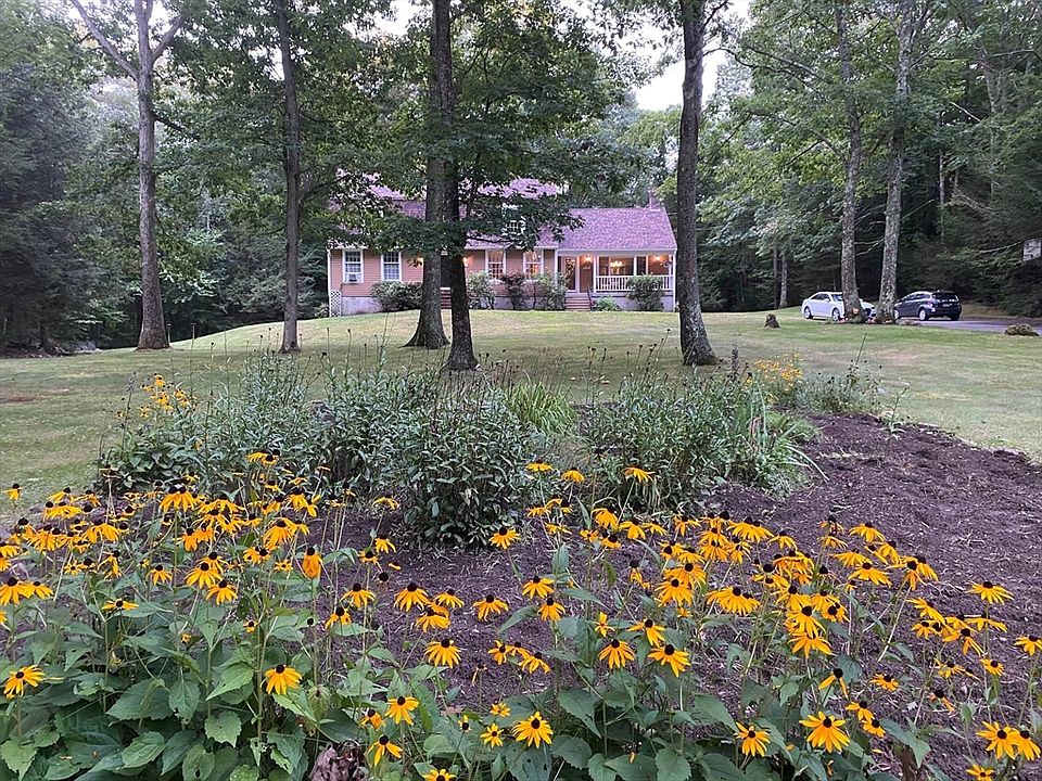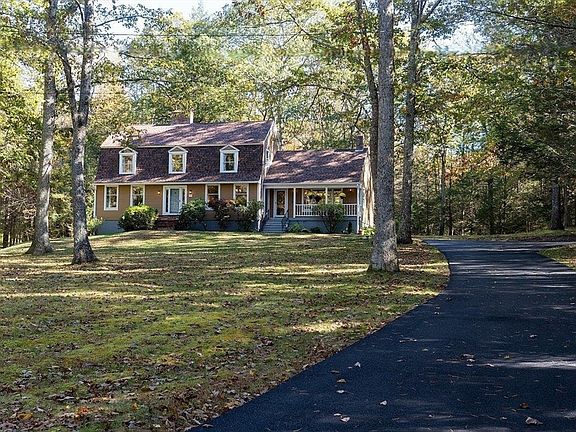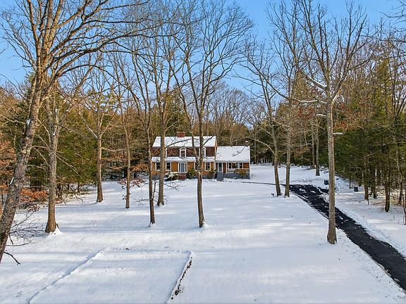 Escape to your own private New England sanctuary—15 acres of wooded serenity surround this exquisitely remodeled 5-bedroom, 3-bath estate. With over 3,200 sq ft of refined living space, this gambrel-style home blends timeless charm with modern luxury. Step inside to discover a chef’s kitchen with custom granite countertops, stainless steel appliances, and a cozy hearth—perfect for entertaining or quiet mornings. The sunlit living room opens to a full-length deck overlooking your personal nature preserve. Three fireplaces, rich hardwood floors, and spa-inspired bathrooms elevate every moment. The first-floor primary suite is a retreat of its own, featuring a walk-in closet, fireplace, and a marble-clad bath with double vanity and walk-in shower. A Buderus heating system and new indirect water heater ensure year-round comfort. Whether you're seeking a peaceful escape, a multi-generational haven, or a work-from-home paradise, this move-in-ready property delivers space,style,and seclusion