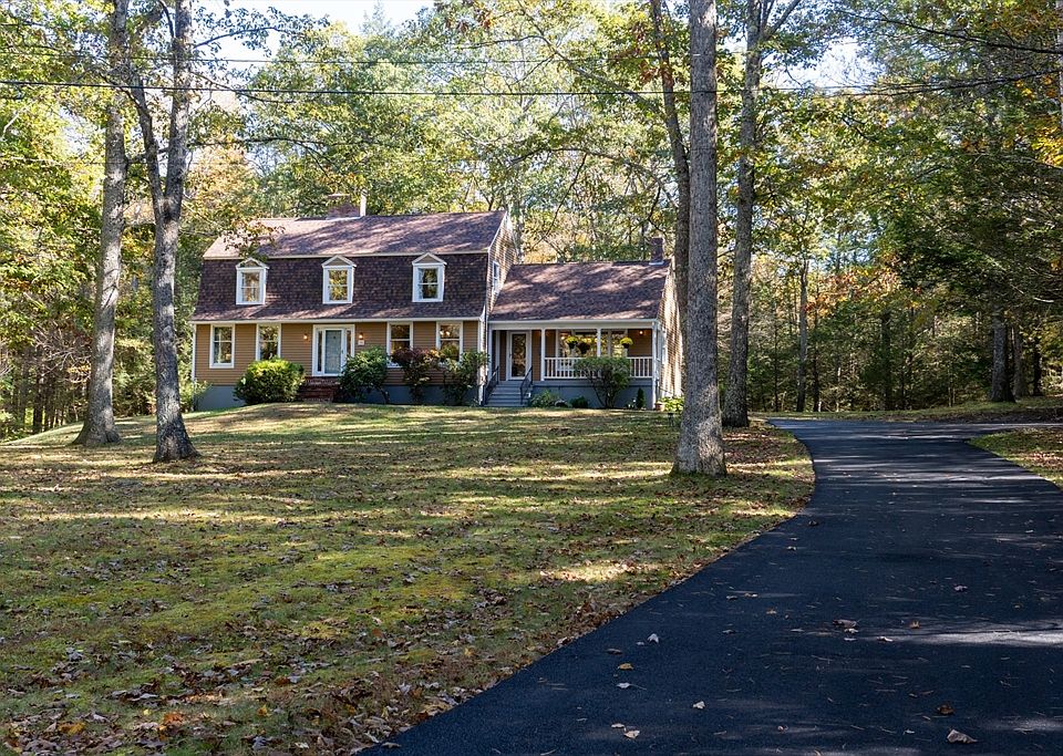 Incredibly spacious 5 bedroom home set on 15 idyllic wooded acres near the center of a quaint New England town. You'll drive up the newly paved driveway past a rock-bordered garden to a beautiful gambrel styled house with an open porch to relax on and revel in the natural setting. Enter into a massive eat-in kitchen complete with fireplace, recently remodeled with exquisite custom granite countertops and new appliances. Entertain in your formal dining room and fireplace-equipped living room which opens onto a full-length deck overlooking your wn private nature habitat. Virtually the entire interior has been remodeled: new hardwood floors, wall-to-wall carpeting, custom-tiled bathrooms with new vanities and fixtures. Massive first floor master BR with fireplace, walk-in closet, and MBa with double vanity and walk-in shower. Your home will be heated by a top of the line Buderus heater and a new indirect water heater. Just move in and relax! It's all been done for you!
