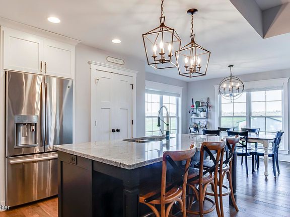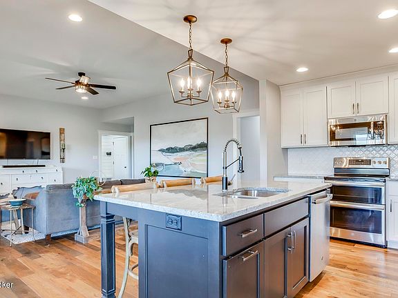 Come see this nearly new, 4-bedroom, 3 full bath split walk-out ranch, sitting on an acre lot on the Spencer/Shelby county line in Fisherville. With nearly 3400 sq ft of living space, the home is perfect for seeking comfort, style and versatility. Welcome to this open concept home with engineered hardwood floors and tiled bathrooms/laundry room throughout the first floor. The well-appointed kitchen has granite countertops and stainless-steel appliances, flowing to the living room and dining area. Step out from the living room to the covered deck with great views. The primary bedroom offers a trey ceiling and a stylish barndoor to the tiled en-suite, featuring double quartz counter, large walk-in glass shower, 2 linen closets, a private water closet and a large closet. The guest . . . bedrooms on the opposite side of the home have double-door closets and shower a full tiled bath with quartz tops. Spread out in the spacious walk-out basement, with a carpeted bedroom including a double-door closet, a large family area and office space and a multi-purpose room that can be used to fit your needs. The family room, office area and multi-purpose room have luxury vinyl plank flooring. The basement also has a full bath with a granite countertop and a walk-in, tiled shower. Take a step outside and enjoy the concrete patio and spacious back yard. With a short commute into Jefferson County, Shelbyville and Taylorsville, this home is well positioned for convenience to the city and a relaxed country lifestyle.