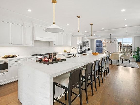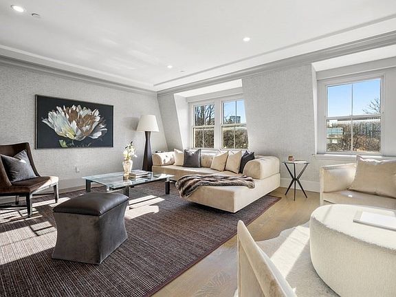 On the market for the first time ever, this one-of-a-kind 4bed/4.5ba penthouse overlooks the Boston Gardens from every floor. Newly constructed in 2018, no expense was spared in this 4,135 sq ft condo, spanning across 3 floors + a private entry au pair suite. The private elevator takes you to the spacious chef's kitchen with custom marble counters, Wolf & Sub Zero appliance package and large dining area. The views of Public Garden make this level an entertainer's dream! The 1st level of living features two guest bedrooms with en suite baths, and a large primary suite with custom walk-in closet and park views!. Above it all, sits a grand head house with 2 private roof decks. South-facing and overlooking the garden, the front deck is outfitted with an outdoor fireplace, TV, and jacuzzi. The north-facing deck is fully equipped with piped-in grille and mini fridge. Complete with 2 heated garage parking spaces and a car turntable, a private gym space/guest suite. Welcome home!