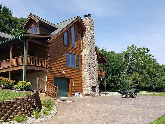 Nestled on 10.11 acres and located just miles from town, this property offers truly one of kind views and privacy. This beautiful log home offers an open floor plan that boasts a spacious living room, vaulted ceilings and a stone fireplace. The kitchen has custom cabinetry along with top of the line of kitchen appliances. A master suite, ½ bath and laundry room complete the first floor. As you descend into the walkout basement you enter a beautiful family room with fireplace that adjoins a full kitchen. In addition to all of this you will find a bedroom and full bath, making this basement an ideal space for guests or that extra space needed on holidays and special occasions. Outside you will find a sprawling, well landscaped property which includes a beautiful stocked lake that can be seen from various views from the back of the home. There are also two metal shop buildings, a covered canopy along with another storage building. Outside there is a fireplace that creates a relaxing outdoor living space and retreat for your family and friends to enjoy. This unique and scenic property creates a feeling of serenity that you absolutely must see to appreciate!