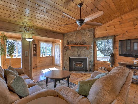 BACK ON MARKET DUE TO BUYER'S REMORSE! Amazing layered mountain views from this true log cabin in Cherry Lake! Embellished w nice stone features at the doorway & deck side, nice open space in the great room w cathedral ceilings & wood burning fireplace, flex room that would be great for addt'l seating & office space, open kitchen & spacious bedrooms! Oversized deck on main level is great for entertaining & the leisure deck would be a perfect place for recreation! Easy access to the firepit area! Being sold fully furnished & already established in the rental program. So close to Downtown Blue Ridge, Toccoa River, Lake Blue Ridge & Aska Adventure Area!