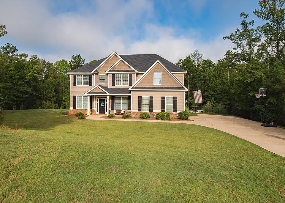 Welcome to Harris County! This 5 bedroom 3 bathroom home meets needs you didn't know you had. From the open concept kitchen, formal living room/dining room, upstairs media room, to the game day porch and salt water pool in the backyard, this home is what you have been looking for! Situated perfectly in a cul-de-sac and backing up to woods, this home affords comfort, privacy and space galore. Lots of upgraded finishes! Zoned for New Mountain Hill Elementary. Don't wait to see this one!!