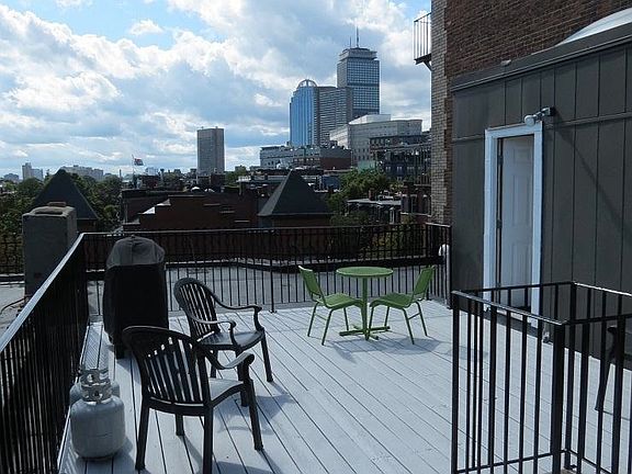 NO FEE! South End... Berkeley St near Chandler St... Condo Quality Entire Floor Two Bedroom/Two Bathroom in pristine three-unit brownstone in one South End's most desired locations. Very large and sunny front-facing living/dining room with bay window, gas fireplace and hardwood floors. Recessed lighting. Central air. Renovated fully-applianced kitchen with gas cooking and cherry cabinet. Washer/Dryer in unit. Spacious master bedroom with en suite tiled bath with jacuzzi. Sizable second bedroom and second full bath. Great closet space. PARKING INCLUDED! Beautiful common roof deck with skyline views. Utilities not included. NO FEE! Available 2/1 for $3500.