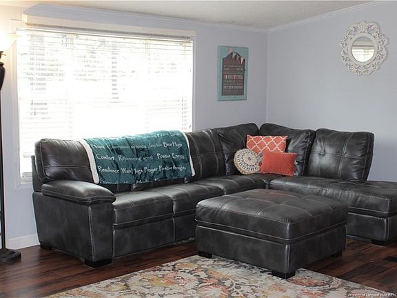 Light & Airy with open floor plan, formal living room, dining area, large kitchen and family room with cozy fireplace. Split floor plan with Spacious master suite, two closets, two vanities, garden tub and separate shower. 3bedroom 2 bath home on almost a half acre, fenced back yard. On well, but county water available at the road. New Roof, HVAC just 6 years old. Located near schools, grocery and 15 minutes from super walmart. Easy commute to Fort Bragg.