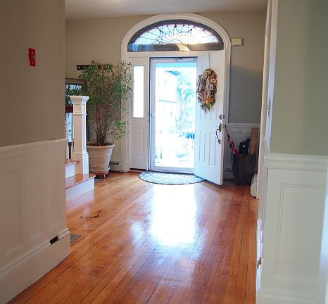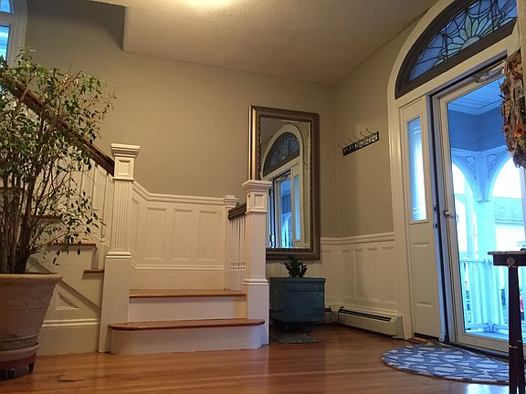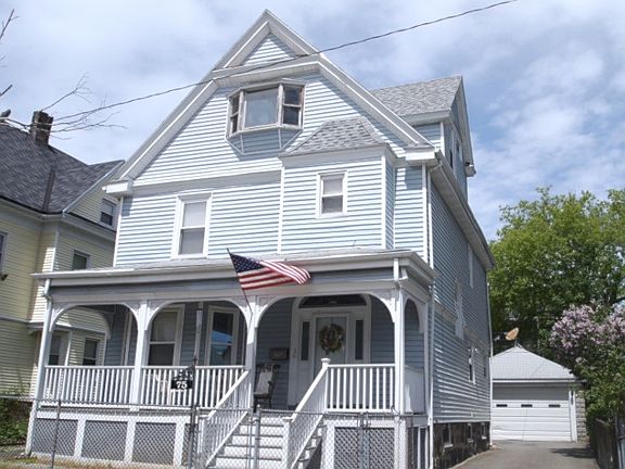 Upon entry the foyer greets you with period details which include original wood molding details, a stained glass window, high ceilings, hardwood floors and a winding staircase. The formal dining room with fireplace is separated from the front parlor space by pocket doors. A rear deck has been added off the kitchen to overlook the backyard which offers adequate space for outdoor activities as well. The second floor has a generous master bedroom with a walk-in closet, two additional bedrooms and a full bath. The third floor has yet another two large bedrooms, a full bath, and more storage. With the completely finished basement's additional bedroom, bath, laundry room, and separate mechanical room this property is easily adaptable to comfortably accommodate an extended family. This property could possibly be converted to a two family as well. Off-street parking is available in the two car garage with additional spaces in a gated driveway. Includes a 2 year old roof, completely re-insulated in 2011, 220 electric, 6 zones for efficient heating, 2 options for water heating sources, security system and much more.....
