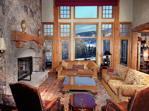 Spectacular Air Conditioned elegant mountain home highlighted with ski slope views. Close proximity to the slopes, an open floor plan with hearth room, butlers kitchen, and 2 spacious Master Suites. Cozy up to one of 6 fireplaces, entertain in the sprawling recreation room and enjoy the custom wine cellar.