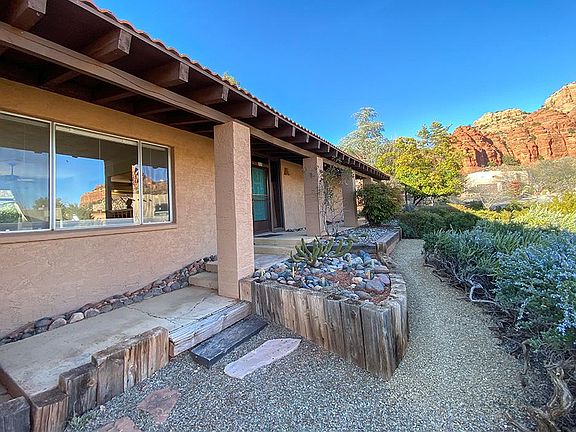 Located in the heart of Red Rock Cove West, this Santa Fe Pueblo style home is surrounded by some of Sedona's famous views of Red Rock formations, Oak Creek Golf Course and nearby access to many hiking trails. This Furnished 1500+ sq. ft. house is dog friendly and has 2 bathrooms and 3 bedrooms, full-appliance kitchen with breakfast bar, great room and laundry/hobby room. Other amenities are a 2-car attached garage and an outdoor Patio with Kiva fireplace for relaxing. This is a charming home in a friendly neighborhood with quiet streets for walking and is ready for you to experience living in Sedona. $2,200/month plus utilities