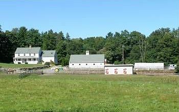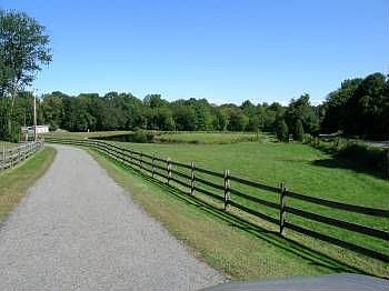 Turnkey Equestrian Facility! Picture postcard setting with rolling fenced pastures private pond(stocked w/fish!) modern barns (9 stalls), lighted riding ring, inground pool & cabana and even a sport court! The custom built Farmhouse offers a rustic country flair w/exposed beams, wood floors, center brick hearth and huge front siting porch.