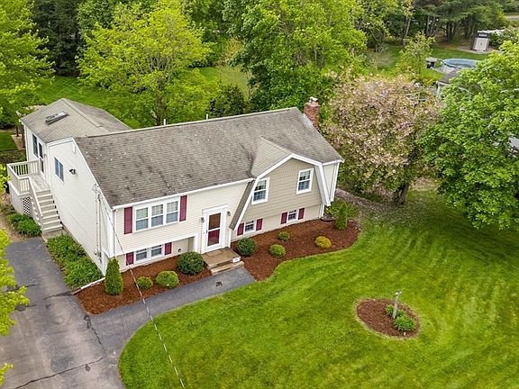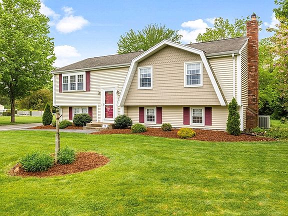 Welcome Home! Pride in ownership shows throughout this beautifully crafted split-level style offering a perfect blend of comfort and quality. With thoughtful updates and a timeless floor plan, the home features 3 spacious bedrooms and 2 full baths with a combination of stylish living, comfort and versatility. The sun-filled living room with hardwood floors is open to the dining room; a perfect blend of space for entertaining. Tastefully updated kitchen offers painted solid wood cabinets, quartz countertops, stainless steel appliances & LVT flooring. Den/Sun Room with beamed cathedral ceiling, skylight and multiple windows is a warm and relaxing area of the home & overlooks the backyard; a gas stove provides additional heat. Family Rm with fireplace w/ wood stove insert is perfect for family game nights, watching TV or reading. The backyard has multiple plantings, gazebo, patio, shed & rhino garage. Cent A/C. Neutral Paint colors. Convenient to town center, schools, highways & T-Station