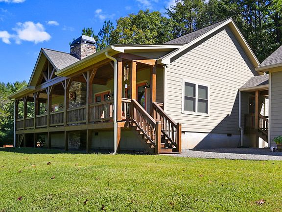 PRIVATE QUALITY CUSTOM-BUILT HOME ON 2.9 ACRES OVERLOOKING A CREEK WITH MULTI-RIDGE VIEWS IN THE MOUNTAINS OF NORTH CAROLINA! This home offers beautiful mountain views, 2.9 acres of privacy, a creek, a large covered porch, arbor w/ a hot tub & stacked stone fire pit area, 2 master bedrooms, 2 master bathrooms, thick granite counters in both bathrooms, glassed-in tiled shower w/ multiple heads, an open floor plan, a great room w/ a soaring cathedral ceiling w/ exposed wood beams, a stacked stone wood burning fireplace, a nice blend of wood & drywall, dining room, kitchen w/ hickory custom cabinets, thick granite counters & a huge granite island/ breakfast bar, farm sink & stainless appliances, solid wood doors throughout, large laundry room w/ custom hickory cabinets on the main, oversized 2 car garage w/ RV site w/ power & water, a huge gravel parking area w/ a gated entrance. GATED, PRIVATE MOUNTAIN LIVING ON A CREEK!!