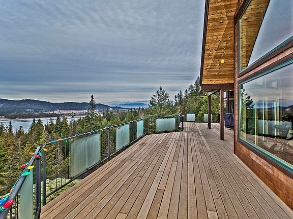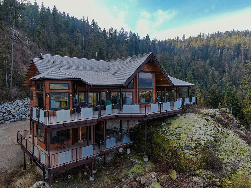 Beautiful custom home with stunning views, built w/ luxury materials throughout including an elevator! Views are endless from the living room, master bedroom, kitchen, entertainment room and the two tiered wraparound decks. Vaulted ceilings in the living room feature T&G ceilings, beautiful floor to ceiling rock fireplace, triple pane Pella windows/sliders w/ access to the deck. Gorgeous hand scraped hardwood floors run through the living room and into the gourmet kitchen. Granite countertops and large island with built in microwave and prep sink. Stainless appliances, double ovens, gas range with hood and 2 ovens are just some of the features in this top of line kitchen.